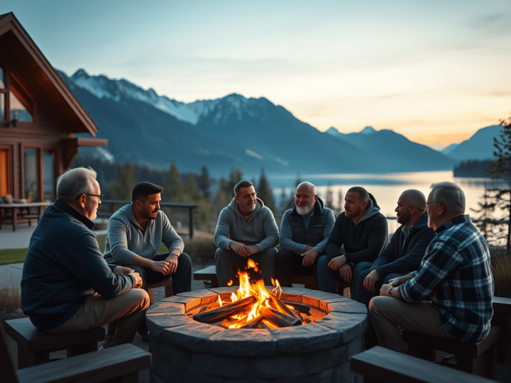 Imagine walking into a beautiful, modern inn nestled in nature, near a serene lake, majestic mountains, and a winding river. This isn’t just any gathering spot; it’s a place where fathers can step away from their everyday adventures. They can come together around a large table, in front of a roaring fire, share stories, nourish connections, and gain new insights.